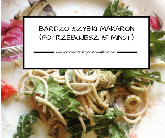 Przepis na bardzo szybki makaron, przygotowanie zajmie około 15 minut. Dla zapracowanych (np. pracujących w domu, albo mających krótką przerwę na lunch w pracy czy szkole) albo tych z dzieckiem pod pachą (lub u nogi).